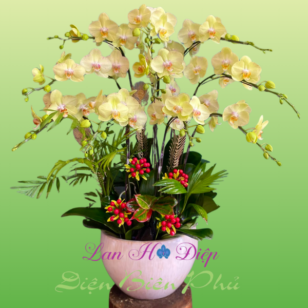 Chậu Lan Hồ Điệp Vàng Tươi 12 Cành