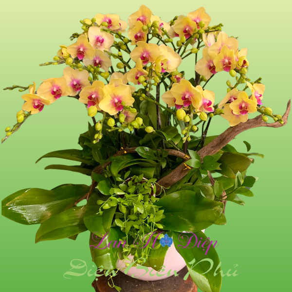 (Chậu Lan Hồ Điệp 10 cành mini vàng)