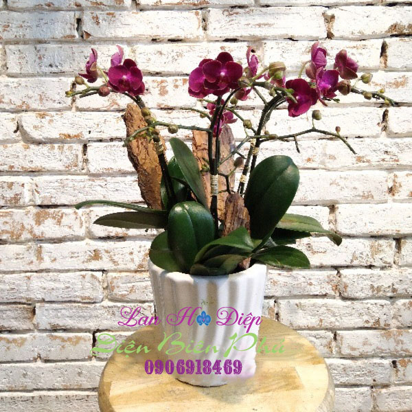 - Chậu Lan Hồ Điệp Mini Tím 3 Cành được trang trí khá đơn giản với các bản gỗ thông lớn tạo nên sự mộc mạc, gần gũi với thiên nhiên. Sử dụng chậu men sứ trắng viền cong sọc dài càng tôn lên vẻ đẹp sang trọng của dòng lan. Với kích thước khá là kiêm tốn, nhưng vẻ đẹp của chậu lan vẫn bừng sáng cả một không gian trưng bày. Vẻ đẹp ngất ngay ấy khiến bao nhiêu người đắm, bao nhiêu người say phải không?