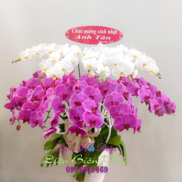 (Chậu Lan Hồ Điệp 12 Cành Tím Trắng trong dịp chúc mừng sinh nhật)