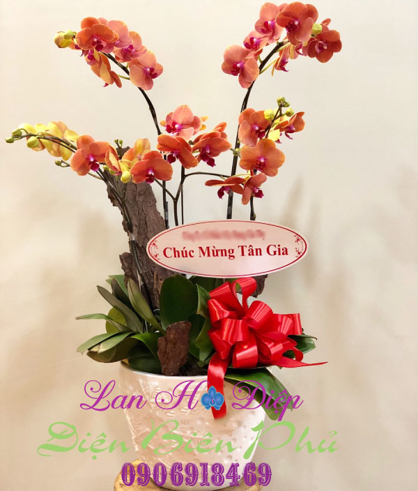 (Chậu Lan Hồ Điệp Cam 5 Cành trong dịp chúc mừng khai trương)