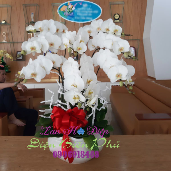 (Chậu Lan Hồ Điệp Trắng 8 Cành trong dịp chúc mừng khai trương)