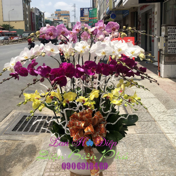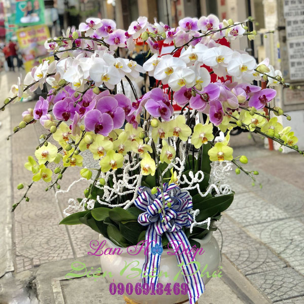 (Chậu Lan Hồ Điệp Vàng Hồng Trắng 24 Cành trong dịp chúc mừng khai trương)