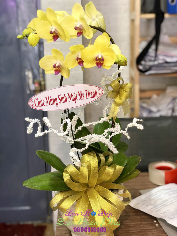 (Chậu Lan Hồ Điệp Vàng 2 Cành trong dịp chúc mừng sinh nhật)