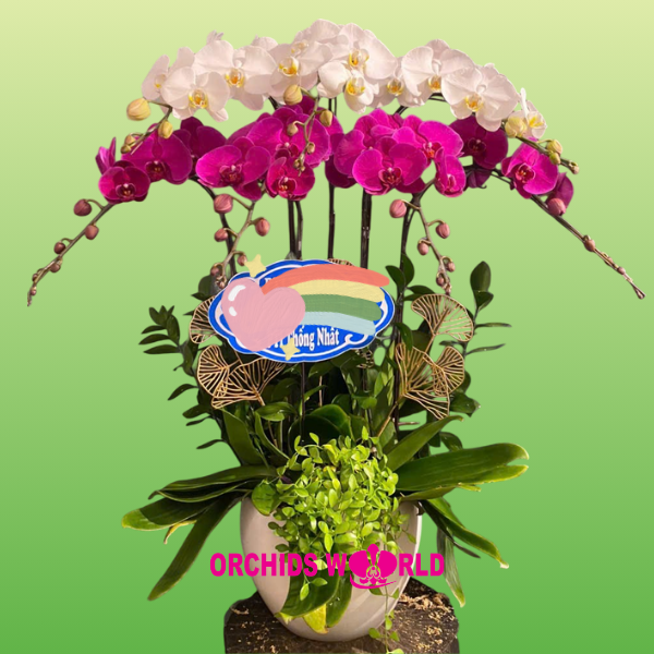 Chậu Lan Hồ Điệp 7 Cành Trắng Tím