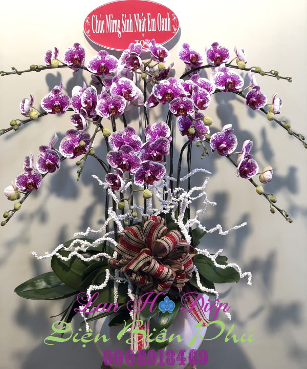 (Chậu Lan Hồ Điệp 10 Cành Tím Đột Biến trong dịp chúc mừng sinh nhật)
