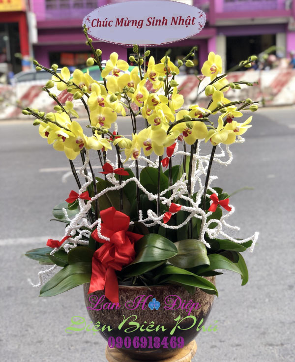 (Chậu Lan Hồ Điệp Vàng 15 Cành trong dịp chúc mừng sinh nhật)