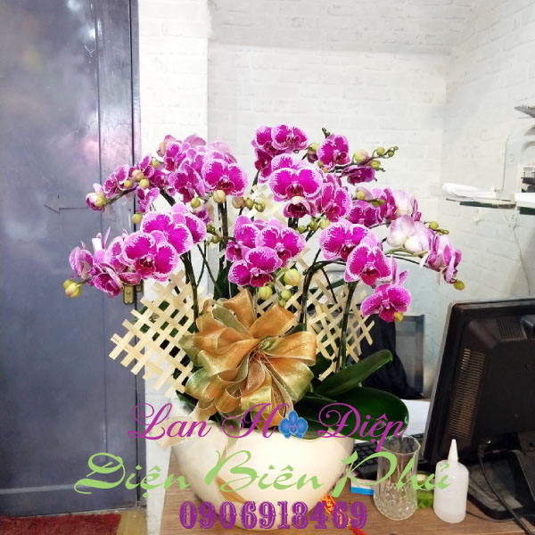- Hồ Điệp vốn dĩ được mệnh danh là "Nữ hoàng của các loại lan" bởi vẻ đẹp kiêu sa, không kém phần quý phái. Ngày nay, Lan Hồ Điệp với nhiều kiểu dáng, màu sắc, kích thước đa dạng, phong phú tạo nên những vẻ đẹp lạ mắt, thu hút mọi ánh nhìn của người thưởng hoa. Vì vậy, Lan Hồ Điệp trở thành lựa chọn hàng đầu trong thời gian gần đây cho các dịp đặc biệt như lễ tết hay mừng khai trương. Để cung cấp cho thị trường những sản phẩm đẹp mắt và chất lượng không chỉ nhờ công chăm sóc, sự tỉ mỉ trong khâu nuôi trồng mà còn phải dựa vào óc sáng tạo và bàn tay trang trí khéo léo của người tạo ra sản phẩm. Công ty chúng tôi đã tạo ra những chậu Lan Hồ Điệp khoe sắc nhất để gửi đến quý khách hàng như một lời tri ân.