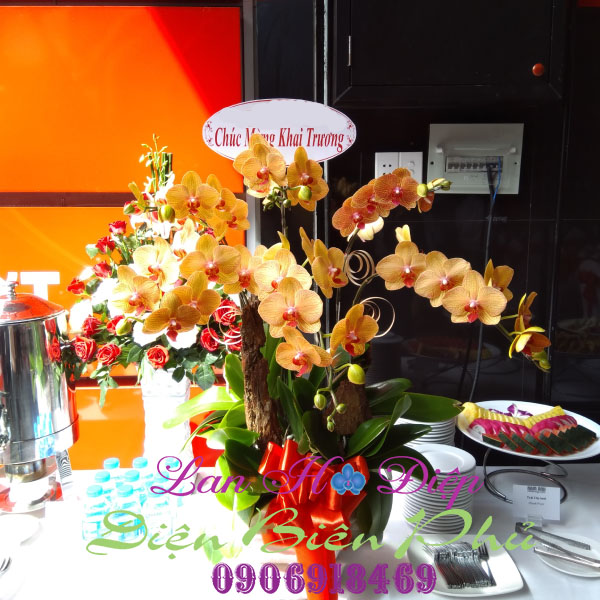 (Chậu Lan Hồ Điệp 6 Cành Cam Đột Biến trong dịp chúc mừng khai trương)