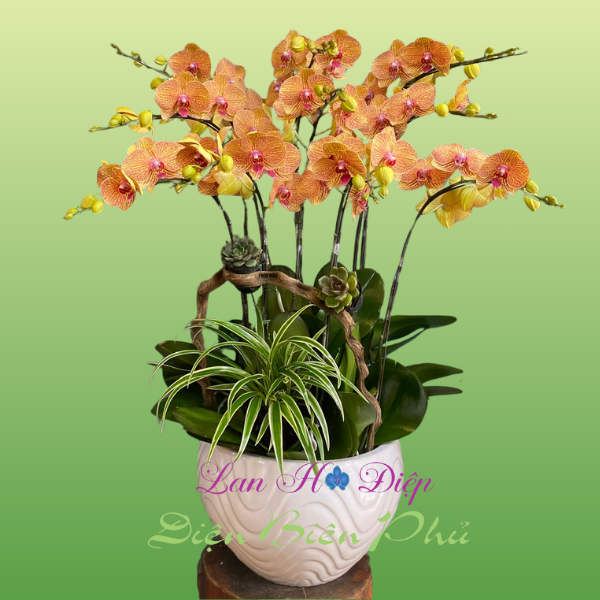 (Chậu Lan Hồ Điệp 10 cành cam sọc)
