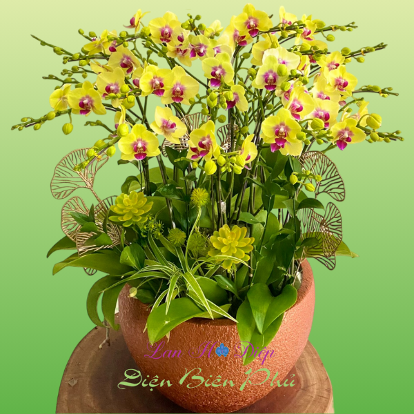 (Chậu lan hồ điệp 10 cành mini vàng)