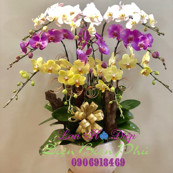 (Chậu Lan Hồ Điệp 10 Cành Vàng Tím Trắng trong dịp chúc mừng khai trương)