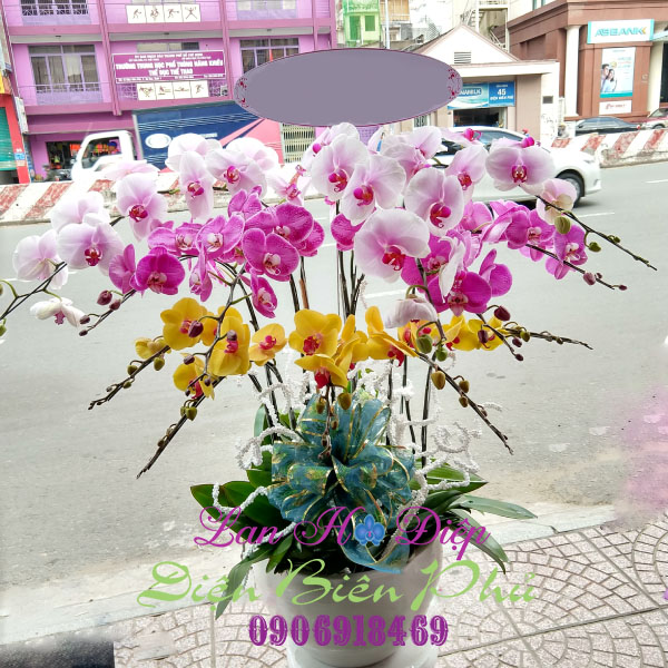 (Chậu Lan Hồ Điệp Vàng Hồng Trắng 12 Cành trong dịp chúc mừng khai trương)