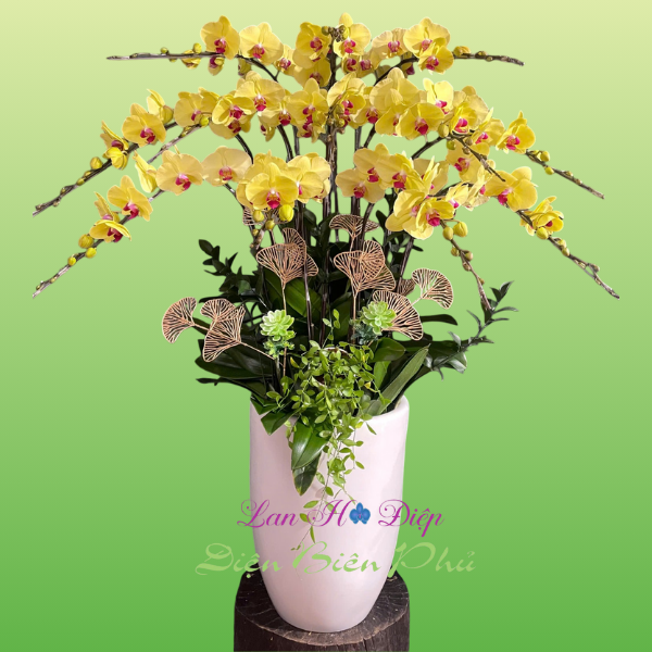 (Chậu lan hồ điệp 12 cành vàng cao)