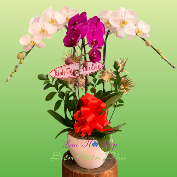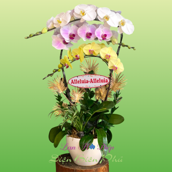 (Chậu Lan Hồ Điệp 3 Cành Trắng Hồng Vàng trong dịp chúc mừng sinh nhật)