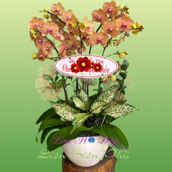 (Chậu Lan Hồ Điệp 5 cành cam sọc)