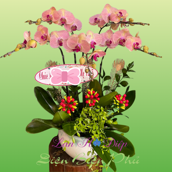 CHẬU LAN HỒ ĐIỆP 5 CÀNH HỒNG ĐÀO