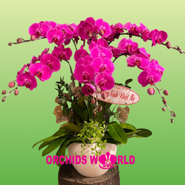 Chậu lan hồ điệp tím không chỉ là một tác phẩm nghệ thuật mà còn mang ý nghĩa phong thủy tốt đẹp. Màu tím đại diện cho sự vững chắc, trí tuệ và quyền lực, phù hợp để trưng bày tại phòng khách, bàn làm việc hoặc làm quà tặng đối tác, người thân trong những dịp quan trọng như khai trương, tân gia, năm mới.