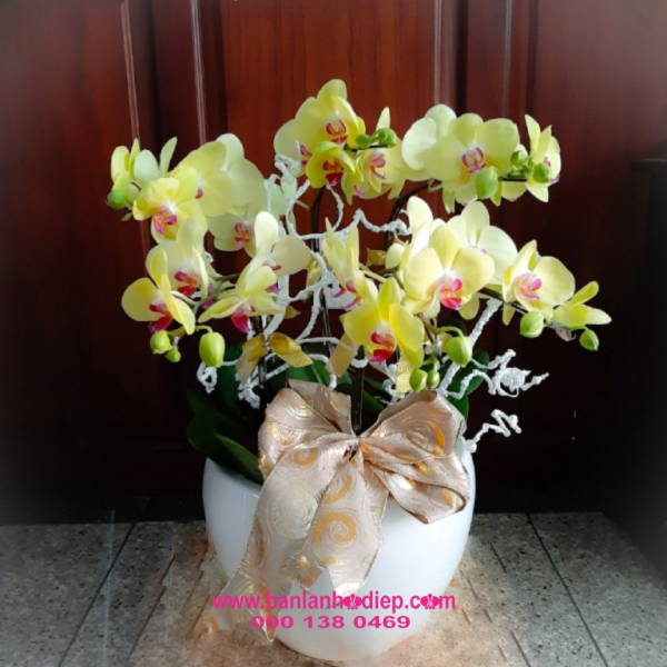 (Chậu Lan Hồ Điệp 6 Cành Mini Vàng trong dịp chúc mừng khai trương)