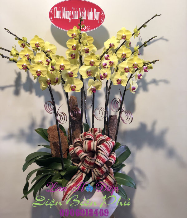 (Chậu Lan Hồ Điệp 8 Cành Vàng trong dịp chúc mừng sinh nhật)