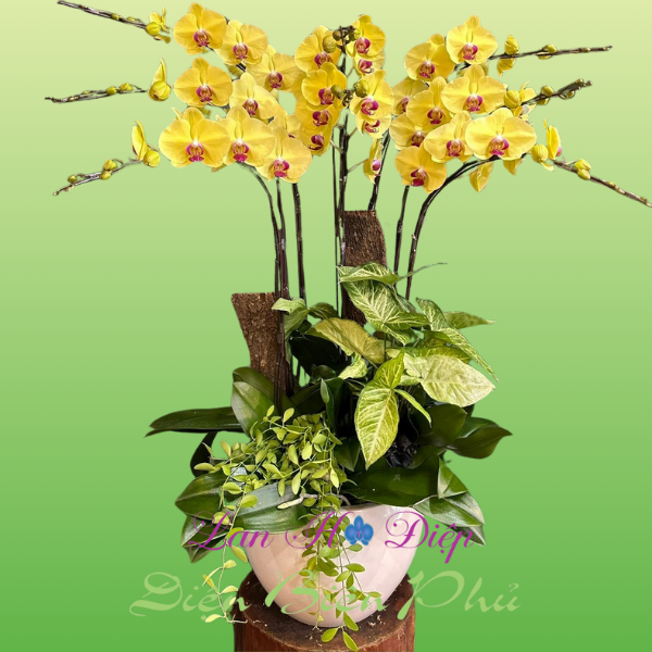 (Chậu Lan Hồ Điệp 8 Cành Vàng)