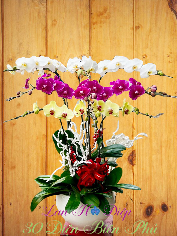 (Chậu Lan Hồ Điệp 9 Cành Vàng Tím Trắng trong dịp chúc mừng thành lập)