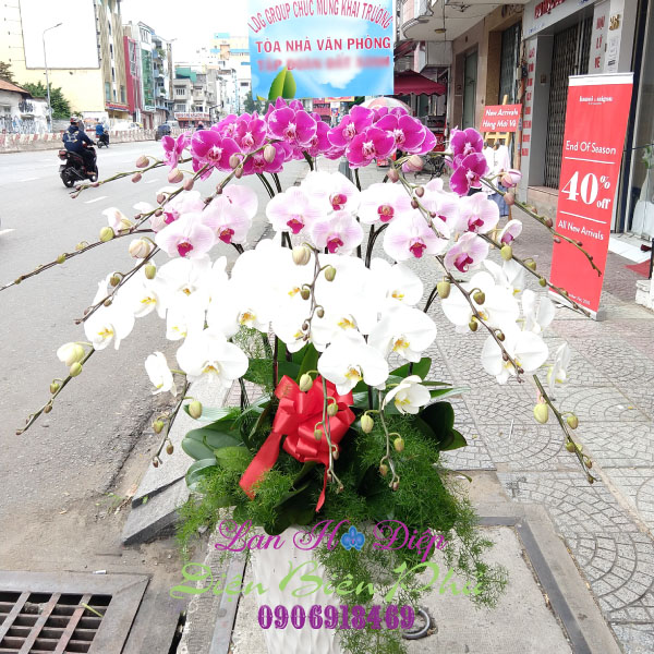 (Chậu Lan Hồ Điệp Trắng Tím Đột Biến 15 Cành trong dịp chúc mừng khai trương)