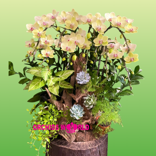Chậu Lan Hồ Điệp Vàng 7 Cành Ghép Lũa - Thanh Lịch Trong Từng Khoảnh Khắc