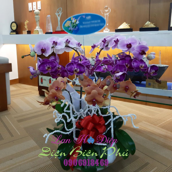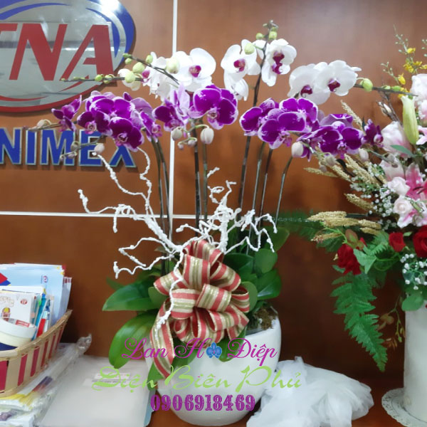 (Chậu Lan Hồ Điệp 9 Cành Tím Trắng trong dịp chúc mừng khai trương)