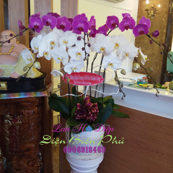 (Chậu Lan Hồ Điệp Trắng Tím 7 Cành trong dịp chúc mừng khai trương)
