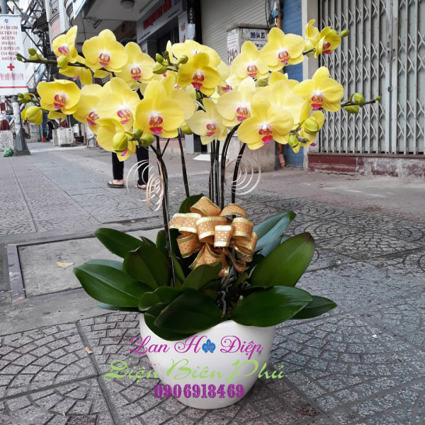 (Chậu Lan Hồ Điệp Vàng 5 Cành trong dịp chúc mừng khai trương)