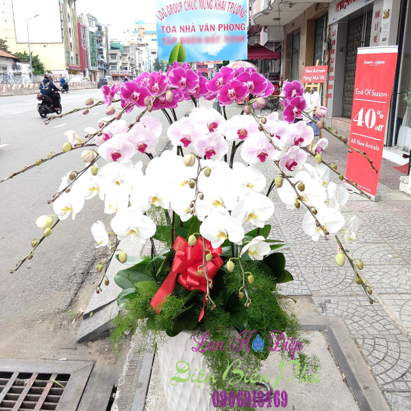 (Chậu Lan Hồ Điệp Trắng Tím Đột Biến 15 Cành trong dịp chúc mừng khai trương )