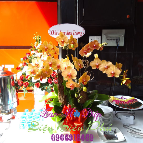 (Chậu Lan Hồ Điệp 6 Cành Cam Đột Biến trong dịp chúc mừng khai trương)