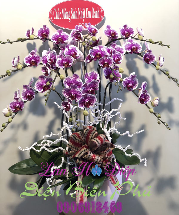 (Chậu Lan Hồ Điệp 10 Cành Tím Đột Biến trong dịp chúc mừng sinh nhật)