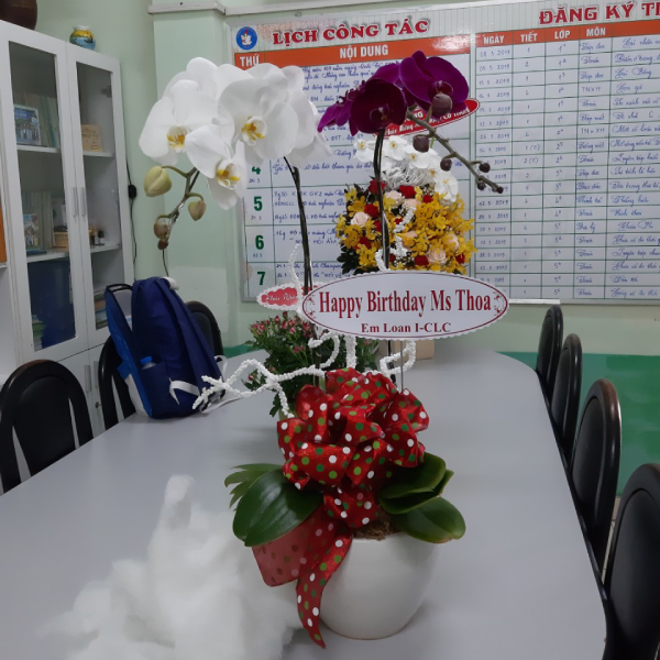 (Chậu Lan Hồ Điệp 2 Cành Trắng Tím trong dịp chúc mừng sinh nhật)