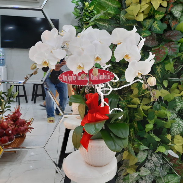 (Chậu Lan Hồ Điệp Trắng 3 Cành nhân dịp mừng ngày kỷ niệm)