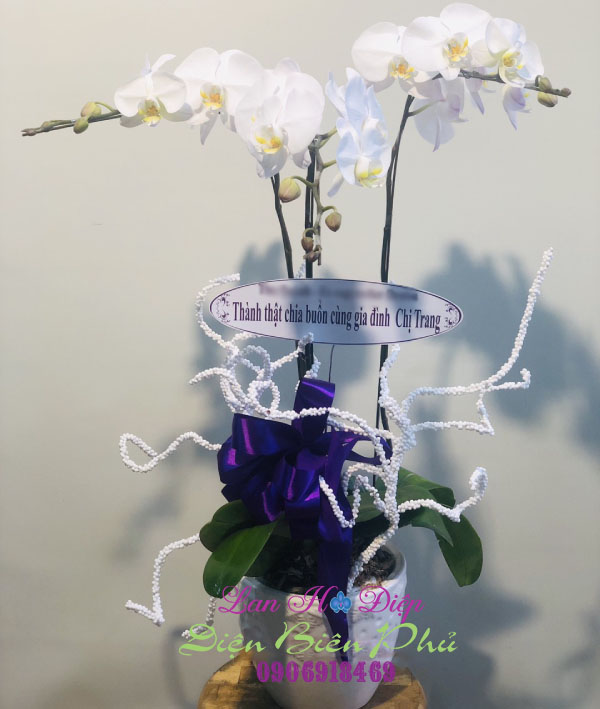 (Chậu Lan Hồ Điệp Trắng 3 Cành trong dịp chia buồn)