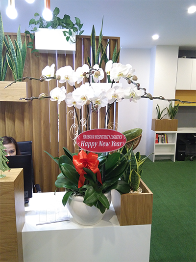 (Chậu lan hồ điệp trắng chúc mừng năm mới)