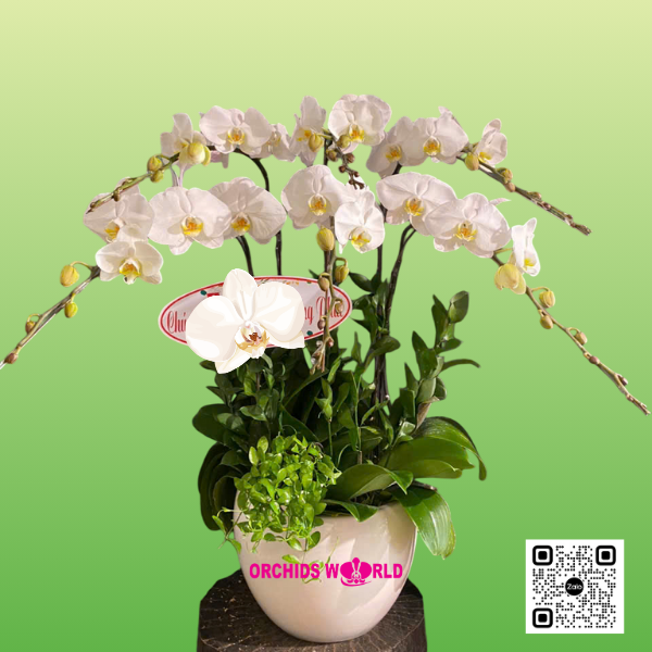 Chậu Lan Hồ Điệp Trắng Mini 2 Cành