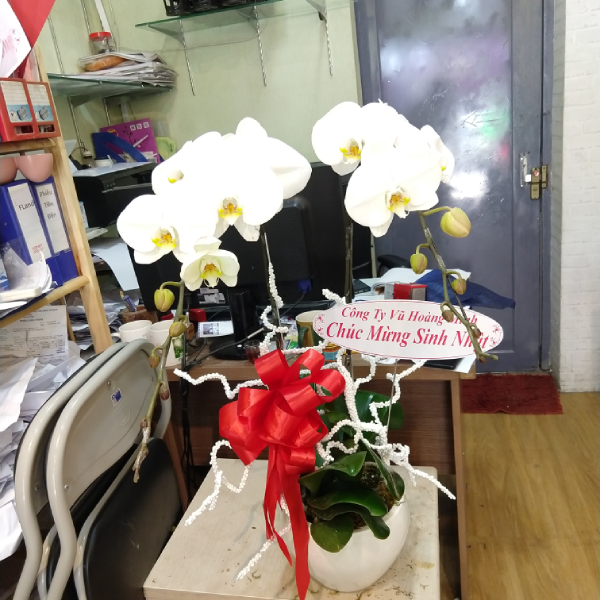 (Chậu Lan Hồ Điệp Trắng 2 Cành nhân dịp chúc mừng sinh nhật)