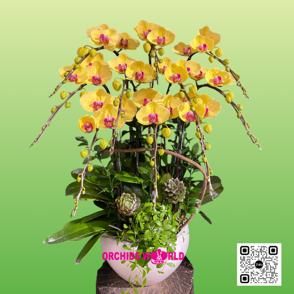 Chậu Lan Hồ Điệp Vàng Tươi 15 Cành
