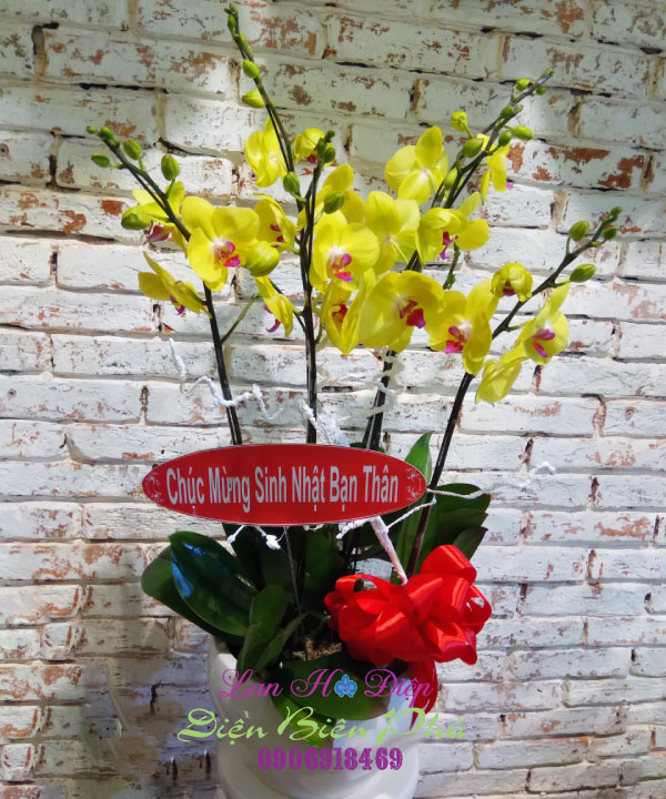 (Chậu Lan Hồ Điệp Vàng Tươi 6 Cành trong dịp chúc mừng sinh nhật)