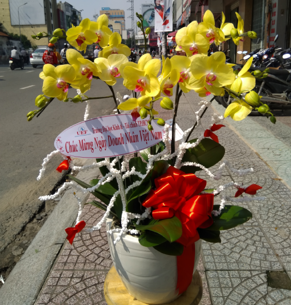 (Chậu Lan Hồ Điệp Vàng 5 Cành trong dịp chúc mừng ngày Doanh Nhân Việt Nam)