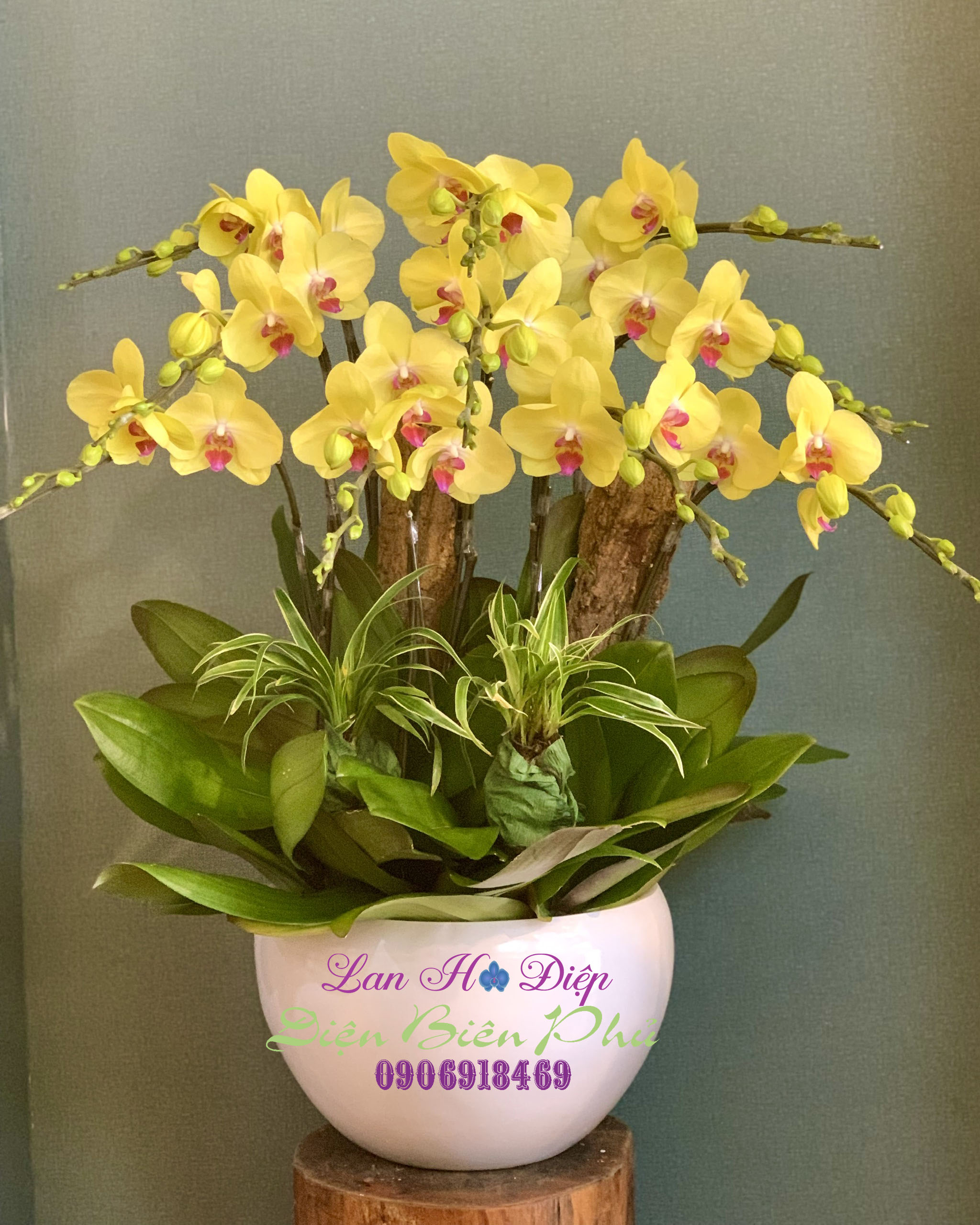 - Chậu Lan Hồ Điệp Vàng 10 Cành có bố cục khá là cầu kỳ với 10 cành lan tạo thành 3 tầng hoa đua nhau khoe sắc, tỏa hương ngào ngạt. Tầng 1 gồm 4 cành, 2 tầng gồm 3 cành xếp tỏa ra một cách khéo léo. Đây được quan niệm như một điềm may mắn, mang màu sắc của sự sống mới đem lại sự thịnh vượng cho gia chủ. Màu vàng luôn tạo cho người ngắm nhìn cảm giác dịu nhẹ, bình yên, sự ấm áp lan tỏa, không còn cảm thấy cô đơn, hiu quạnh nữa như ánh nắng ban mai sưởi ấm căn phòng nhỏ.