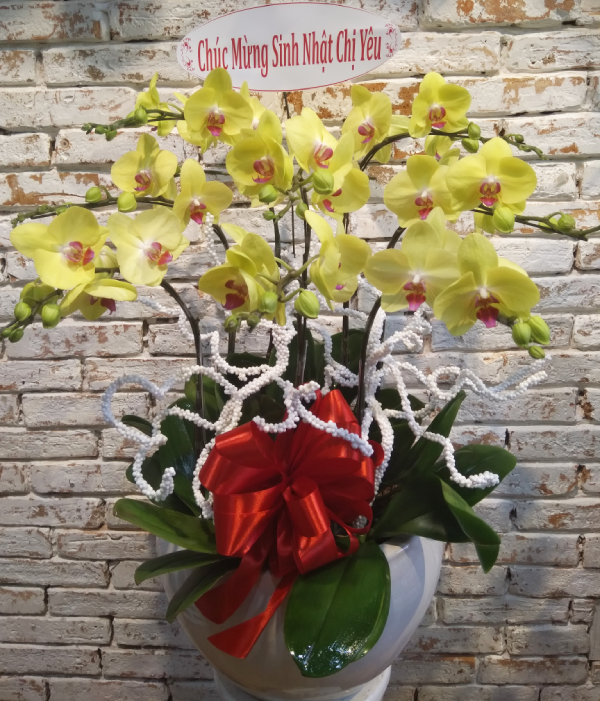 (Chậu Lan Hồ Điệp Vàng 8 Cành trong dịp chúc mừng sinh nhật)