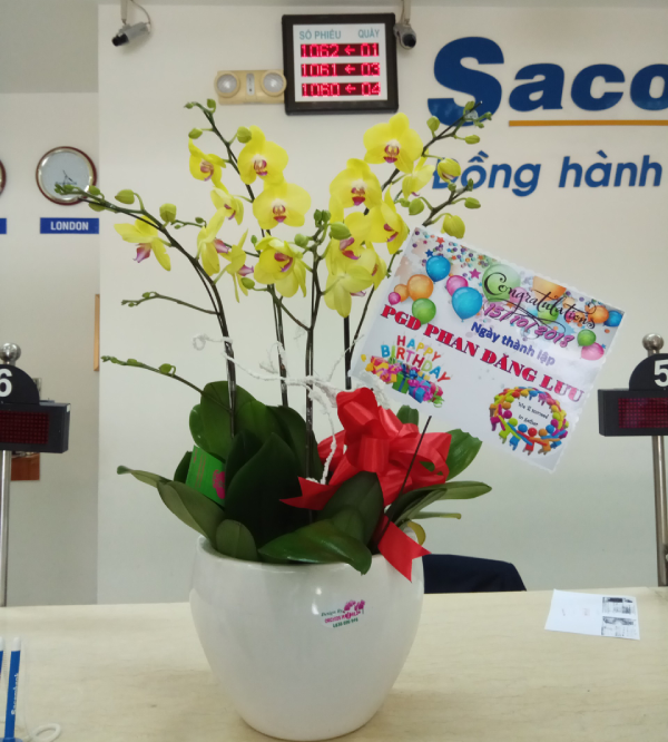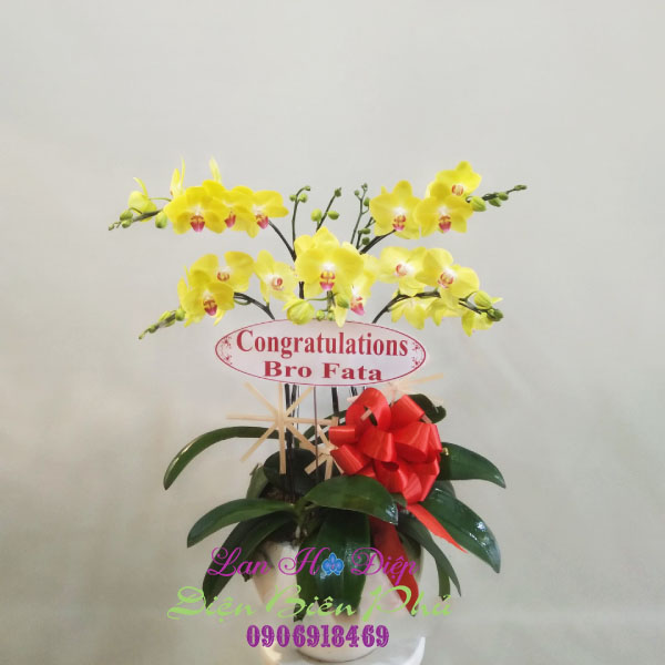 (Chậu Lan Hồ Điệp Vàng 5 Cành trong dịp chúc mừng khai trương)