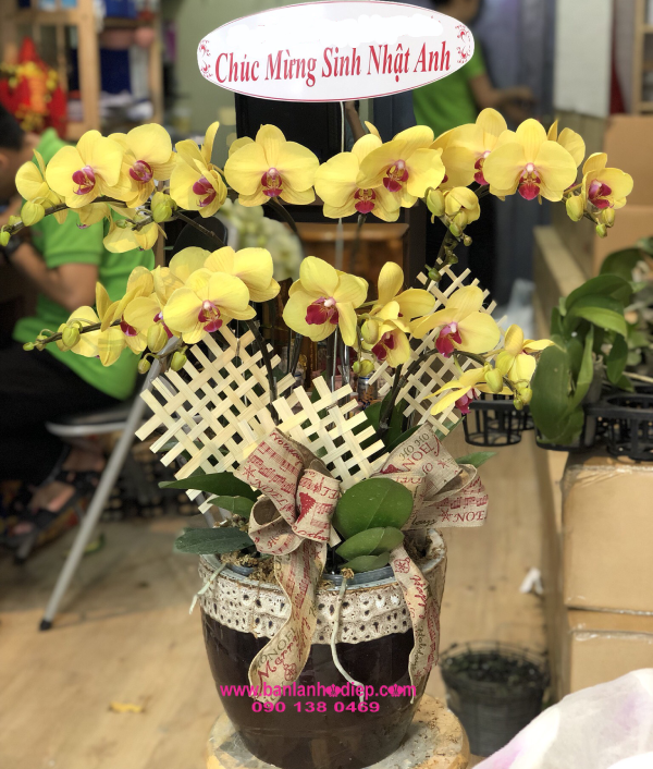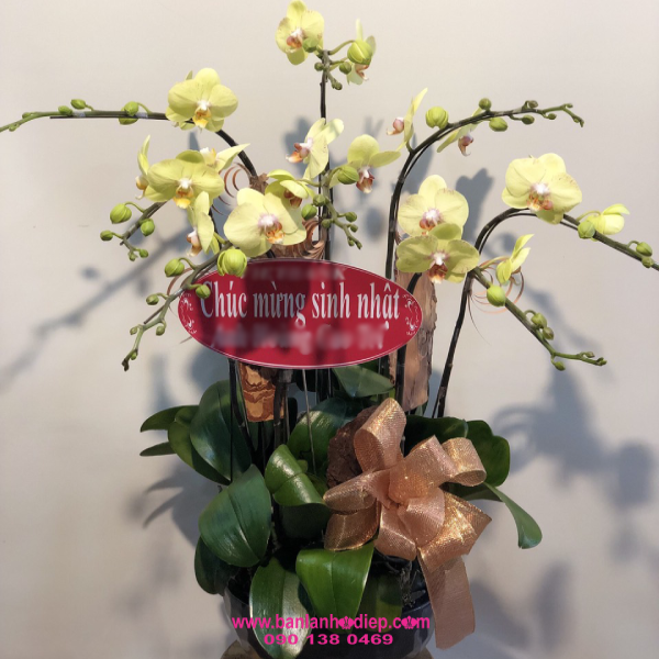 (Chậu Lan Hồ Điệp Vàng Mini 7 Cành trong dịp chúc mừng sinh nhật)