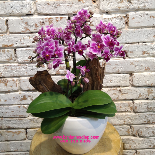 - Lan Tiểu Hồ Điệp Đột Biến Tím 3 Cành gồm 3 cành lan tím đột biến nhỏ xinh với kích thước ngắn khoảng 30 - 40 cm thuộc dòng quý hiếm với màu sắc bắt mắt được ghép khéo léo vào chậu men sứ sang trọng. Những đóa hoa nhỏ nhắn mọc thành chùm với sắc tím viền trắng lạ mắt trông thật tươi tắn và hấp dẫn làm sao!. Màu tím là màu đại diện cho tình yêu gia đình hoặc tình cảm lứa đôi hay nỗi khát vọng sự hạnh phúc, yêu thương sâu sắc giữa con người với nhau. Có lẽ vậy, mà những người yêu nhau mượn những cành hồ điệp tím trao tặng người yêu thương như một lời giải bày về tình yêu hay sự chờ mong về một tình yêu lãng mạn....