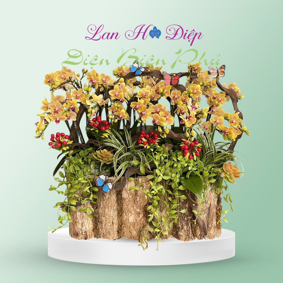 Chúng tôi cũng cung cấp các dịch vụ chăm sóc chậu lan, giao hàng nhanh chóng và hỗ trợ tư vấn miễn phí về cách chăm sóc lan hồ điệp để cây luôn khỏe mạnh và ra hoa lâu dài.