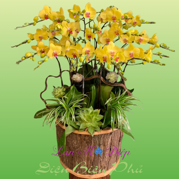 (Chậu lan hồ điệp mừng khai trương 20 cành vàng bơ chậu thuận buồm xuôi gió)